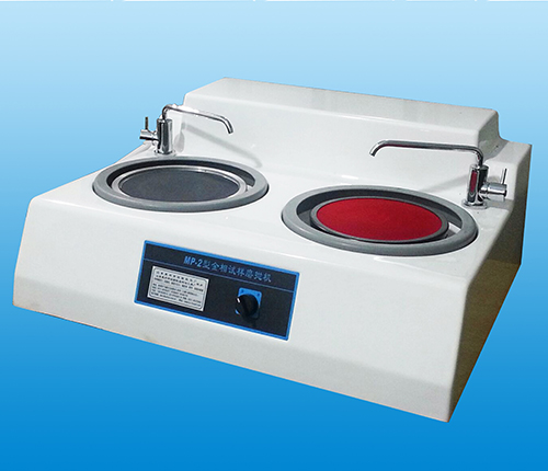 該機左盤為預磨盤,右盤為拋光盤。預磨時,通過回轉水咀將冷卻水不斷注入旋轉的磨盤中,砂紙在大氣壓的作用下可以緊貼在磨盤上,從而不須將砂紙粘結或夾緊。拋光時,可將拋光織物平鋪在拋光盤上,然后用扣圈扣緊織物,再進行拋光,織物和拋光盤都可及時方便的更換。